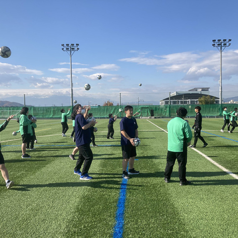 最初はボールに苦手意識をもっていた生徒もいましたが、講師が生徒たちの名前を呼びながらコミュニケーションを取ることで距離を縮め、楽しく教えてもらうことで徐々にボールにも慣れてきました。