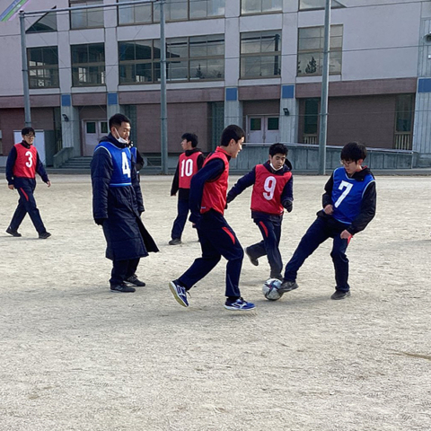 ゲームでは仲間と声を掛け合い協力する姿や、試合に参加した先生に負けじと一生懸命ボールを追いかけるなど、チャレンジや仲間との助け合いなどスポーツを通してたくさんの気付きと学びの時間になりました。